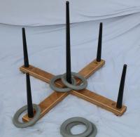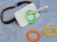 U speelt 2 beurten, waarbij je 1x gooit en 1x vangt. De ene persoon doet de riem om z'n middel, met de ringhouder aan de voorkant. De tweede persoon gooit de 5 ringen om de beurt richting de ringhouder.