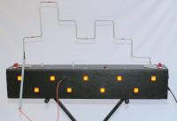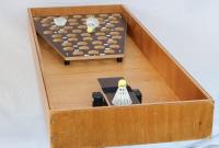 Plaats een shuttle op de wip. Sla met je hand de wip naar beneden, zodat de shuttle naar het gatenbord vliegt.